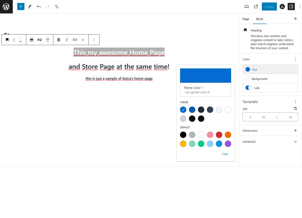 Click on the element that you want to edit, and make the desired changes. For our demonstration, we’ll just change the color of a part of the heading text.