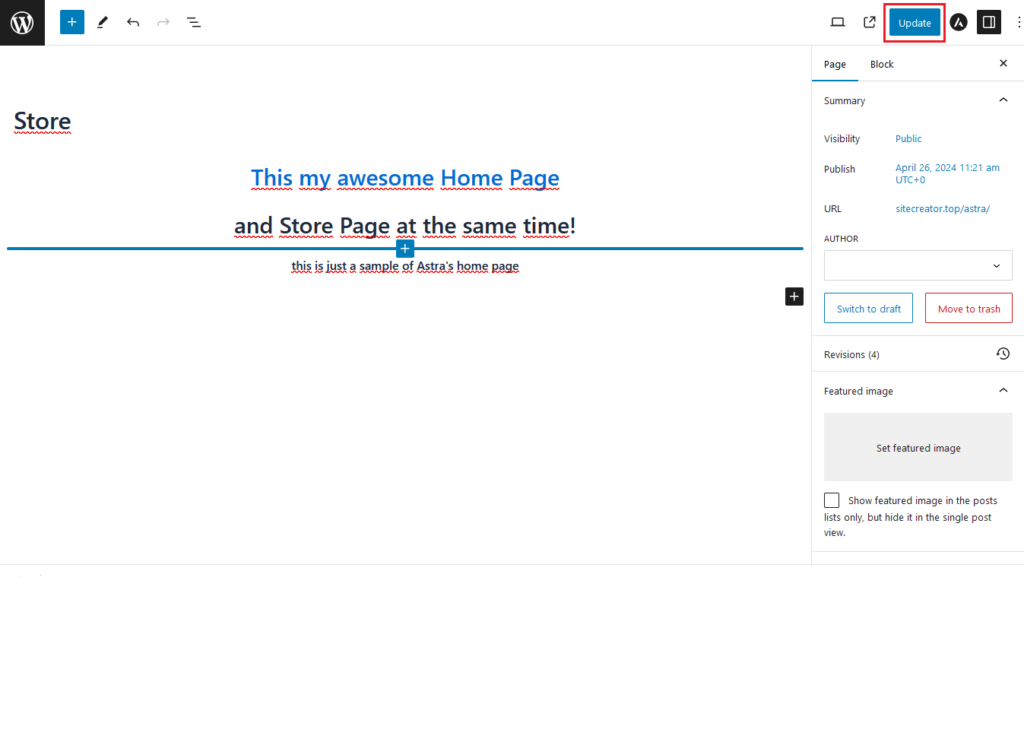 To customize your website with the page builder (used in Astra Theme and other themes customization) and to make changes to a page, you can simply edit the page, customize it, and update the page.